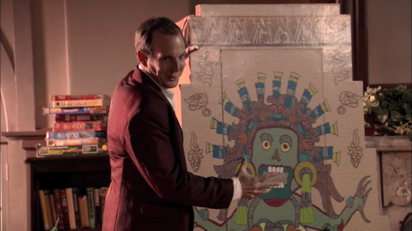 Even when he wasn't hiding inside the tomb, it was visible in the background in many episodes including "Afternoon Delight", "Ready, Aim, Marry Me", "Sword of Destiny", and "Righteous Brothers".