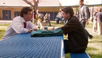 Trying to flirt with Steve Holt, Lindsay hangs around the high school. Maeby convinces him that the hoarse Lindsay is a transvestite, but he is impressed rather than frightened. George Michael's grades start to slip because he flirts with classmate and girlfriend Ann Veal all day, so Michael makes him see an optometrist, which hurt his eyes even more. ("Sad Sack")
