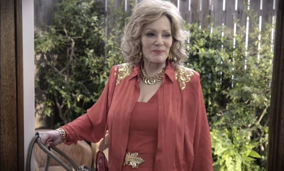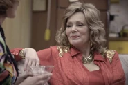 During the 1982 Mr. and Mrs. Bluth pageant at the beach house, the kids parade in their swimsuits in front of their parents. Gob is wearing Stan Sitwell's eyebrow for a fake Magnum P.I. mustache. Lucille's mother Mimi arrives. Mimi mentions Lindsay's upcoming birthday. Lindsay thinks she's turning 14, and Mimi humors her. Lucille says they haven't seen Mimi in five years. Mimi says that she started the family pageant tradition, and she offers a prize for the pageant.