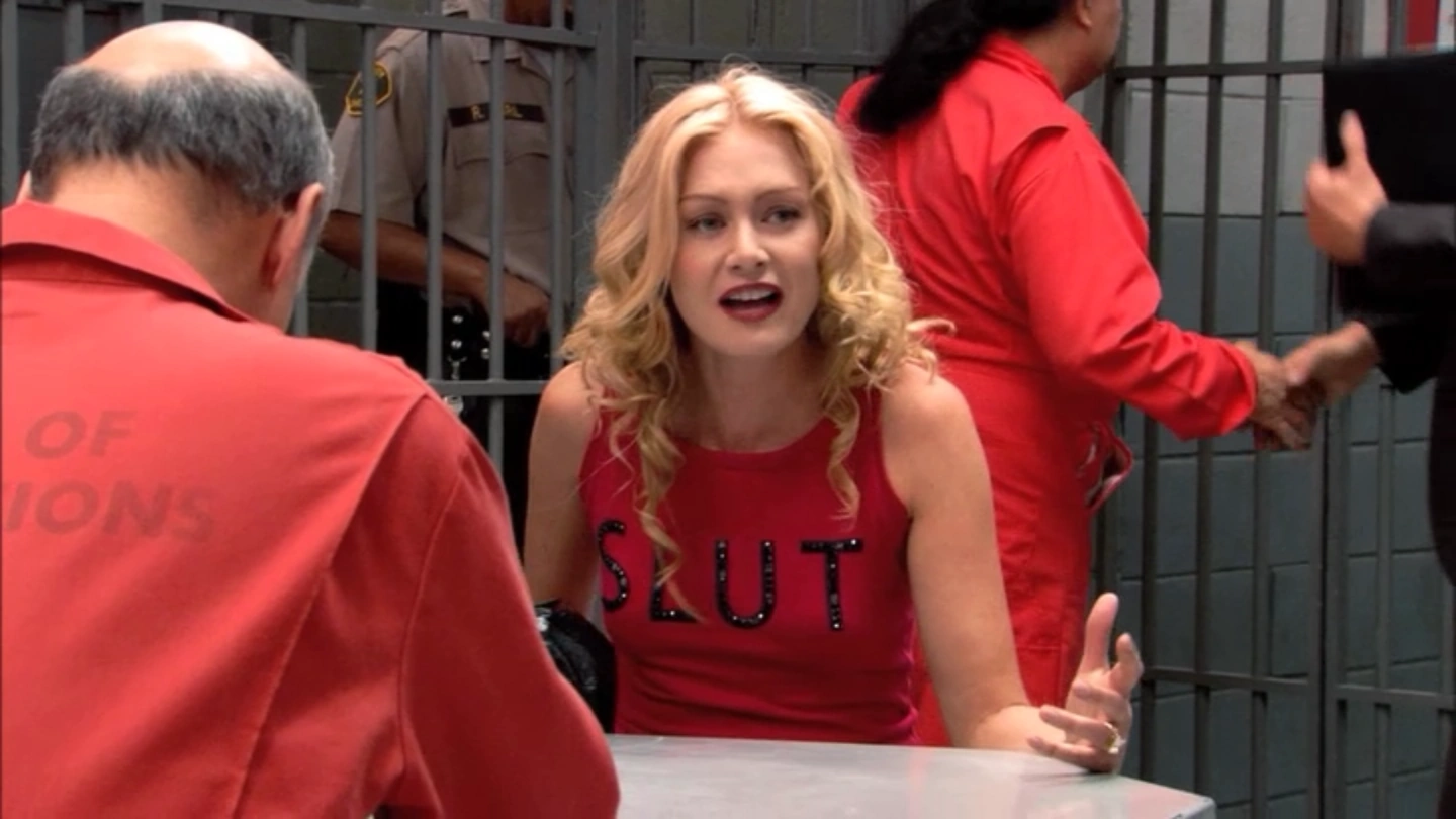 Lindsay, on the request of Michael, visits George in prison. None of the other inmates pay attention to her so she returns in a nice dress and heels. Again, no heads are turned. She decides to buy a SLUT shirt to turn some heads but again nobody notices her. She complains about this to her father who reveals that he has been paying the other inmates off with gold Krugerrands to not stare at Lindsay. She is happy that her father is spending money on her.