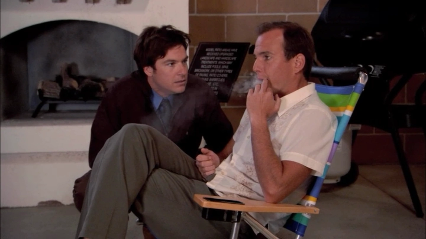 - G.O.B. says, "It's cold out here" in an attempt to cover up his breathing out what appears to be marijuana smoke.