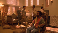 - A photo of George and Saddam shaking hands is uncovered, though George claims he didn’t know he was meeting Saddam Hussein and believed it was the actor who played the Soup Nazi. Michael tells him he doesn’t need to worry about due to Donald Rumsfeld having had a similar meeting. ("For British Eyes Only")