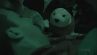 Buster suffered from night terrors, and when he awoke he saw his stuffed Arctic seal in his bed. G.O.B. found out his wife was suing him for $250,000 the lost seal so he decided to get it (and Buster's Swatch that the seal swallowed) back. Barry discovered the seal had a tracker and it had been located. They followed the tracker to a dock and discovered that a shark had bitten the seal's flipper off. ("Motherboy XXX")