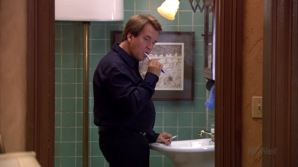 Uncle Trevor smoking and brushing his teeth in "Mr. F"